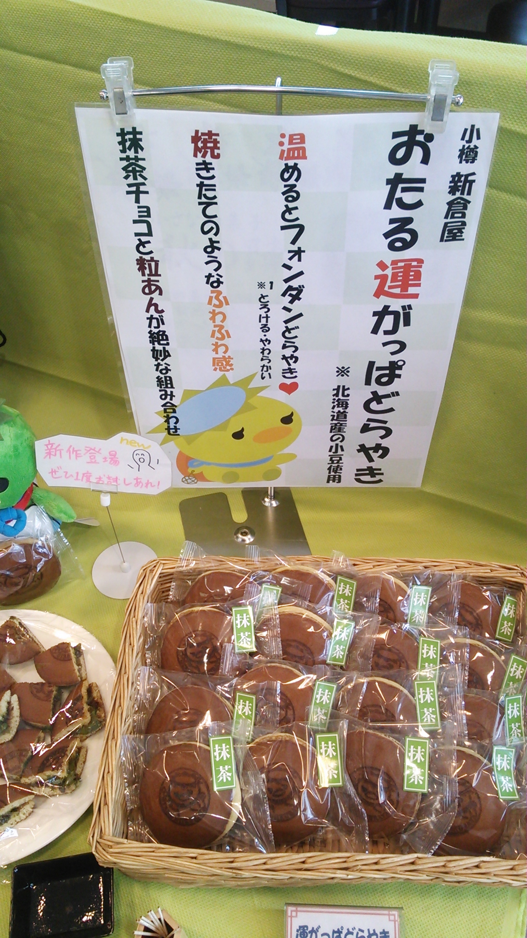 新倉屋の自慢の味『どらやき』と小樽のゆるキャラ『運がっぱ』がコラボし出来上がった